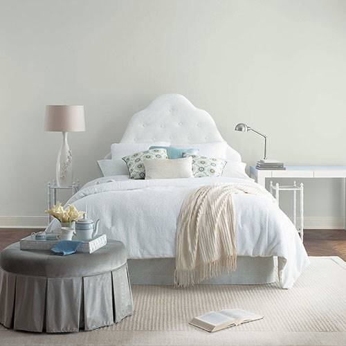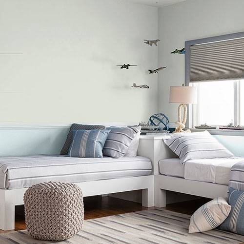 This very light grayed green is perfect for main walls. A calming and balancing color works well with darker sage tones.