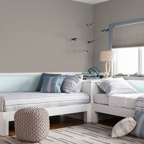 A graceful gray is a perfect selection for a quiet space for contemplation. Darker wood accents would warm up this elegant color.