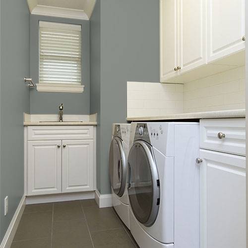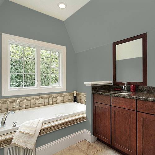 This subdued green creates a soothing and natural space. Use this green in a living room for its casual and relaxed feeling.