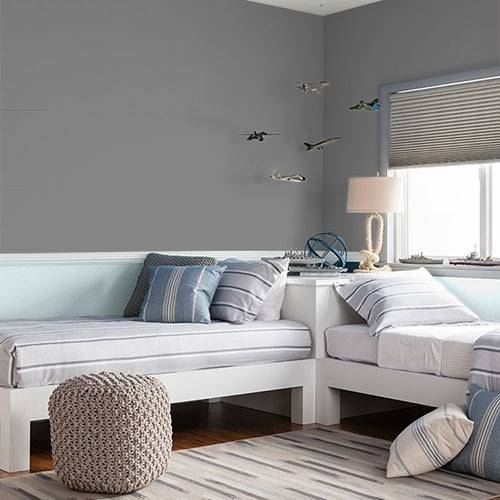A calming gray adds depth to your interior. For a subtle look, coordinate with other light neutrals or whites.