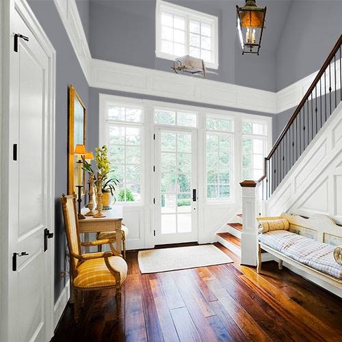 This midtoned gray is an excellent trim for surrounding lighter gray walls. Darker woods can be elegantly designed for this area as well.