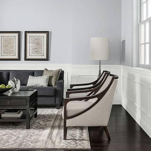 This soft gray is an amazing wall color for any interior. Use darker shades of gray for surrounding walls for contrast.