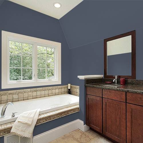 For a sense of mystery, this grayed navy is a great choice for a bedroom. Calming in nature, a light cream is a wonderful treatment alongside the blue.