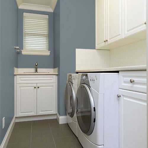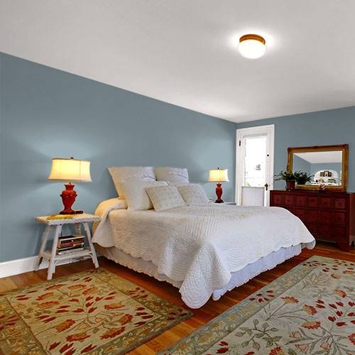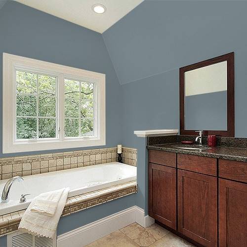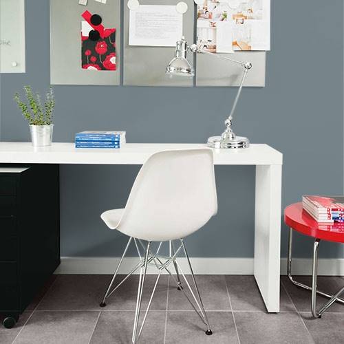 This modern gray is appropriate for a great room with lots of windows. Paired with light trim creates a soothing environment.