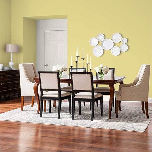 Feeling like spring, select this yellow to usher in optimism into your home. Pair with charcoal gray accents in area rugs or artwork.