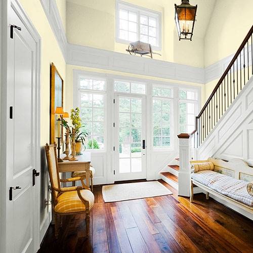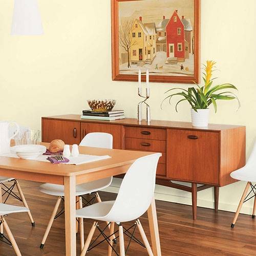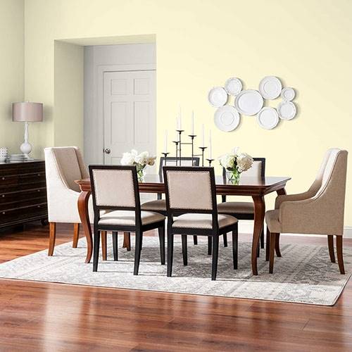 This frosted pastel yellow is quite tasteful for any space you desire. Use white trim and contrast shades of green for a nature inspired look.