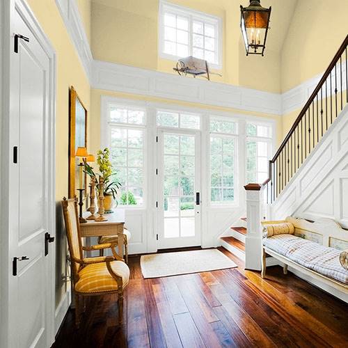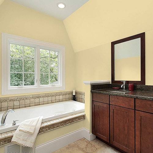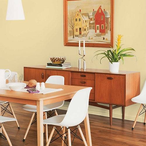 An elegant midtoned yellow is perfect for the kitchen. Contrast with deep charcoal walls or light gray toned countertops.