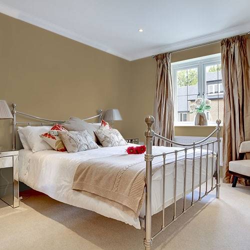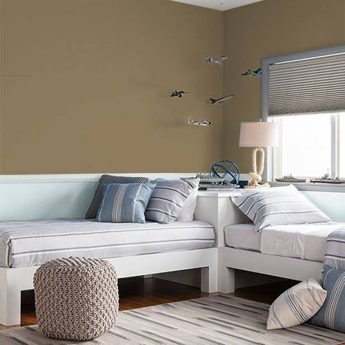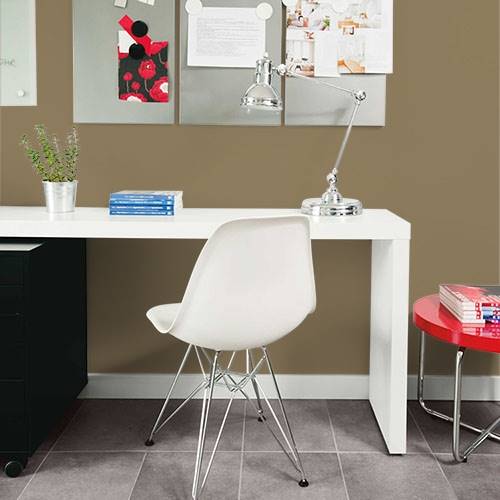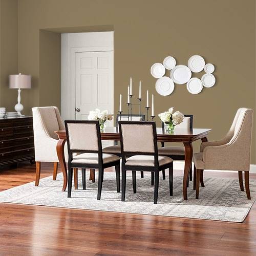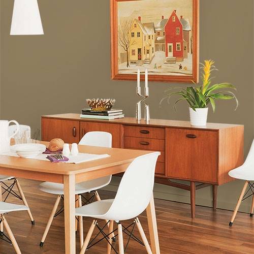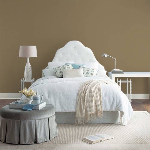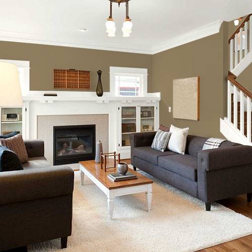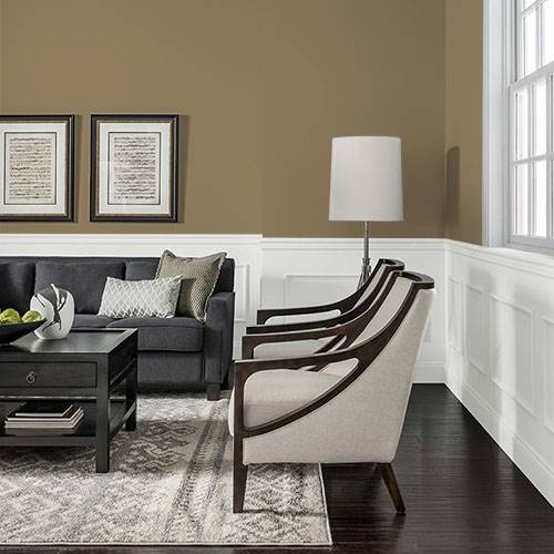 A golden brown can be used as a sophisticated accent wall. It coordinates with deep rusts and touches of hunter greens.