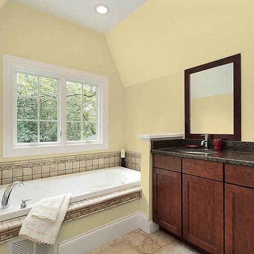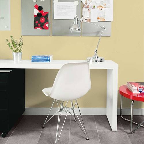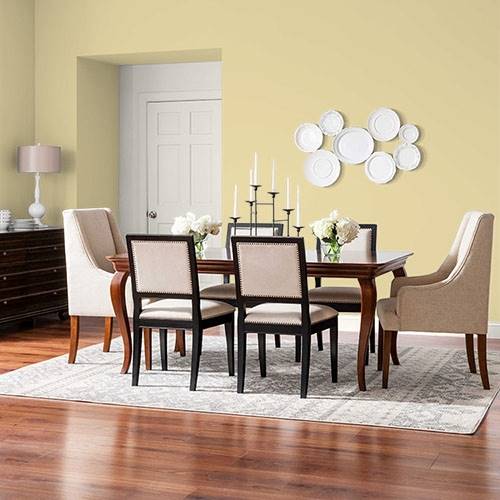 This subdued gold is an elegant color for all walls. Coordinate with charcoal gray accents and plum accessories.