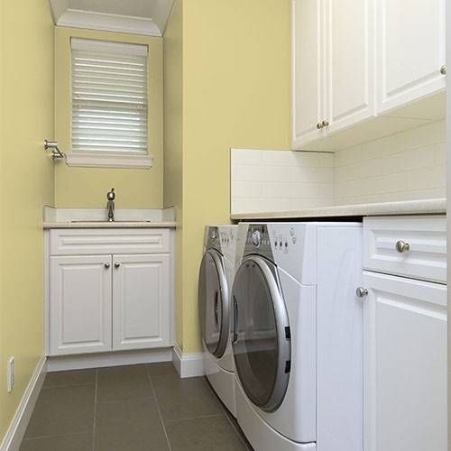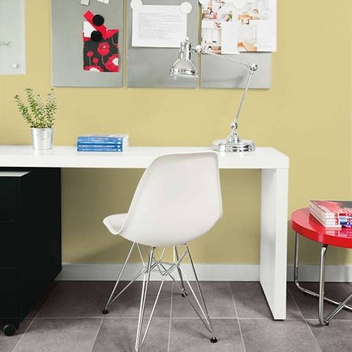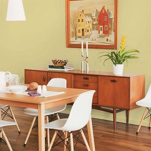 This kiwi inspired gold is a welcoming color for a dining room. Pair with midtoned gray violets for a complementary color scheme.