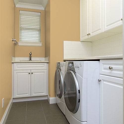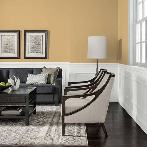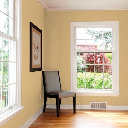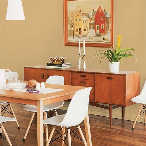 This stylish softened gold speaks of refinement in a dining area. Cherry wood stains and Asian carpeting tie this unique essence together.