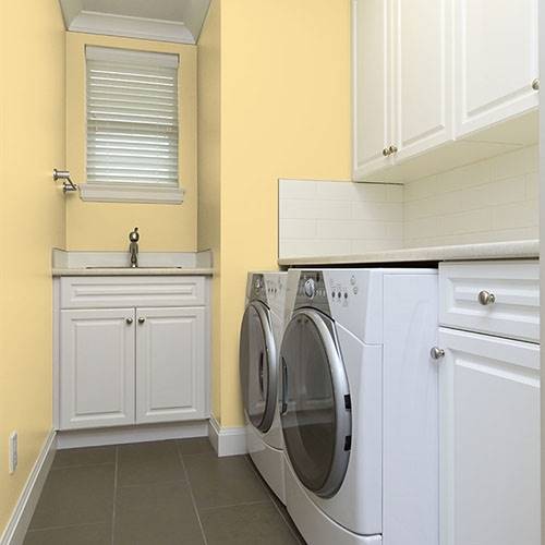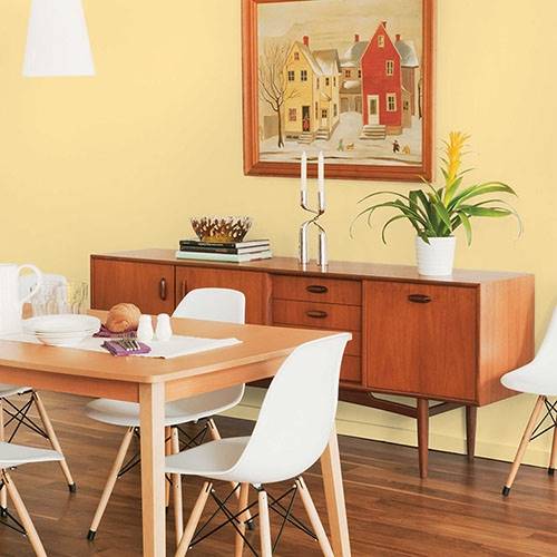 A fizzy yellow is perfect for main walls. This pairs quite splendidly with surrounding darker tan walls.