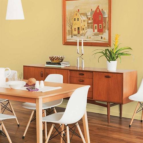 This flaxen gold is perfect for a dining room. Pair with floral tones for a traditional look.