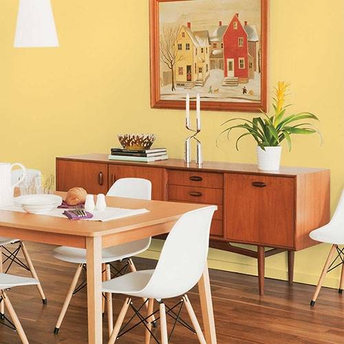 This lively yellow is perfect for a kitchen color. Contrast with stainless steel appliances and translucent glass accents.