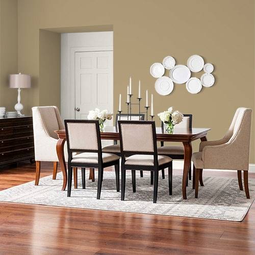 This subdued gold is a favored main color. It pairs elegantly with plum and teal accents.