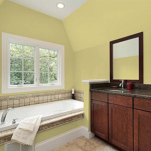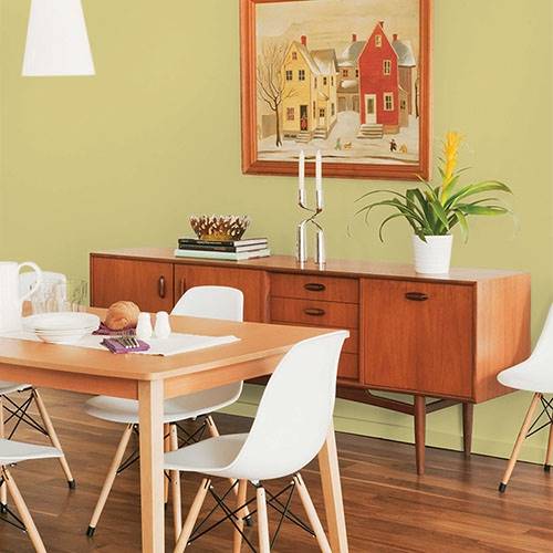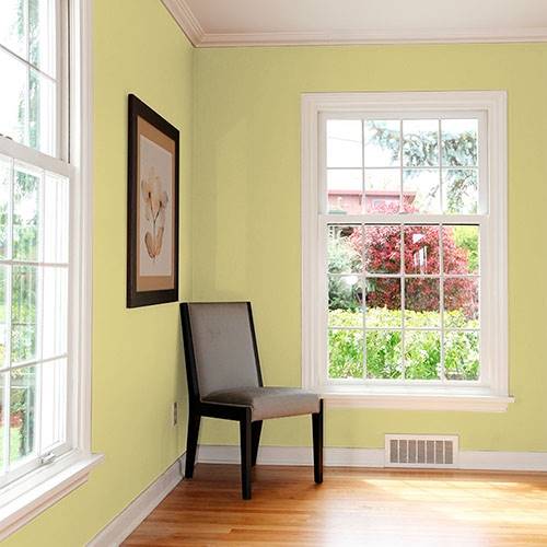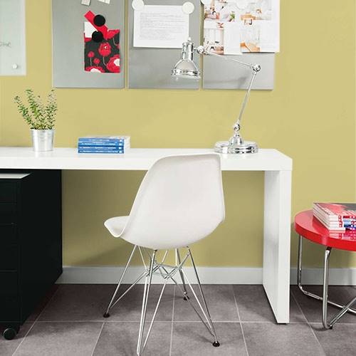 This complex yellow is a main wall color. Pair this interesting color with shades of green and plums.