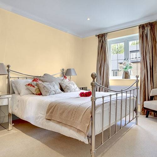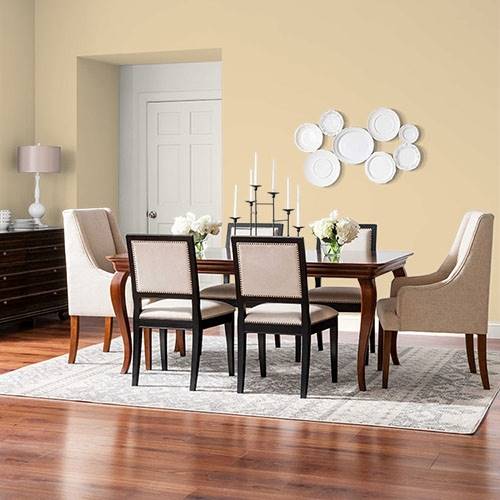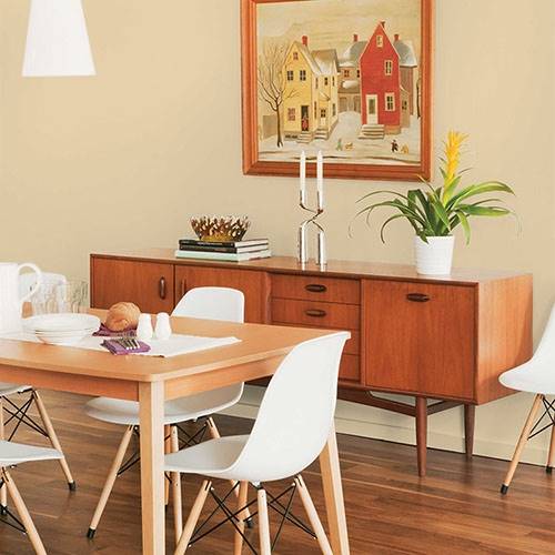A perfect midtoned cream can be used as a main wall in any given space. Touches of light cream frame this color nicely.