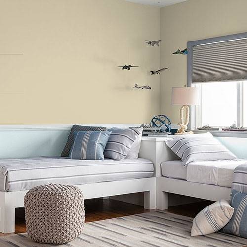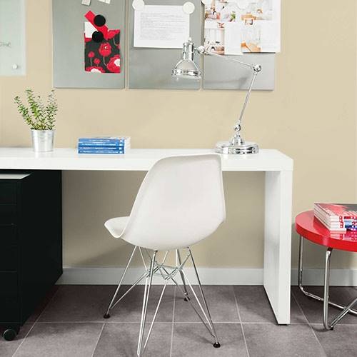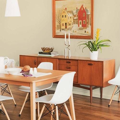 A perfect neutral for all walls. This color contrasts beautifully with muted plums that can be applied on accent walls.