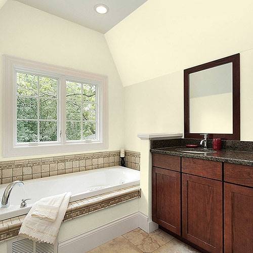 A summer infused yellow tint is beautiful in a breakfast nook. Pair midtoned natural woods for contrast in this inviting area.