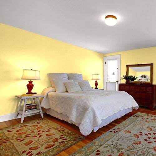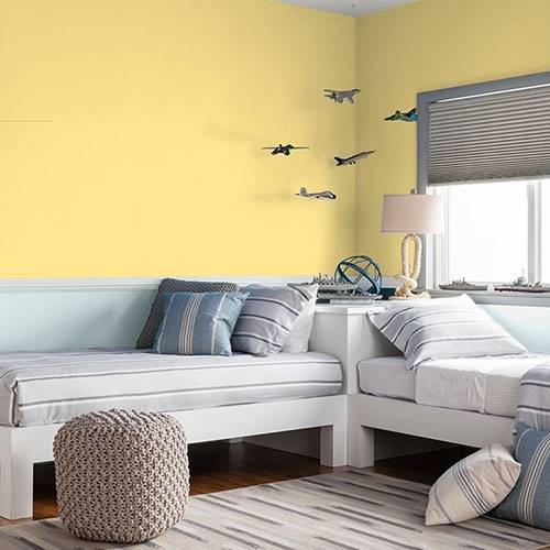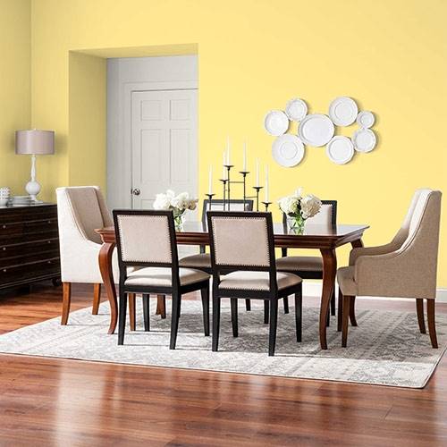 Use this fun lively yellow for a multi-purpose room for a pizzazz of energy. Contrast these walls with lighter cream yellows and violet for a complementary look.