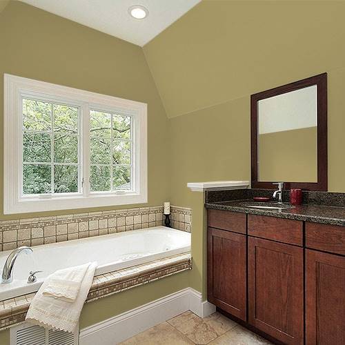An elegant olive that creates a beautiful dining room accent wall. Pair with light creams and darker woods.