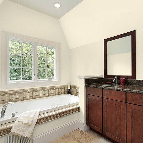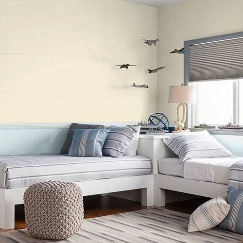 This welcoming cream creates an inviting kitchen. Apply white trim and contrast with pops of floral inspired colors of reds, corals and blues.