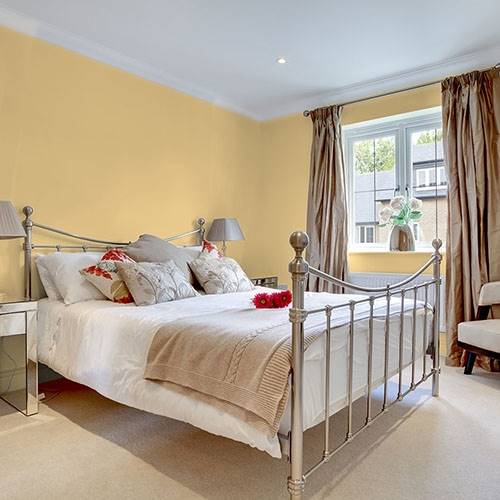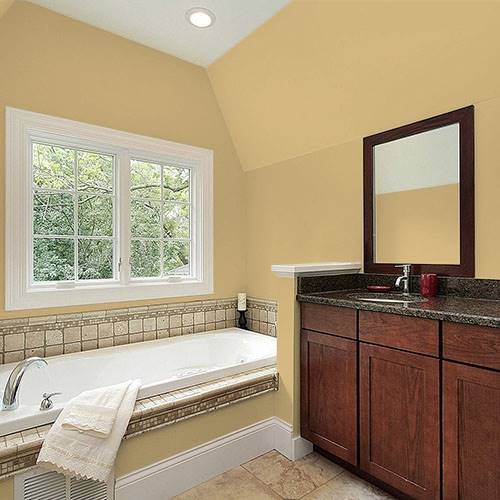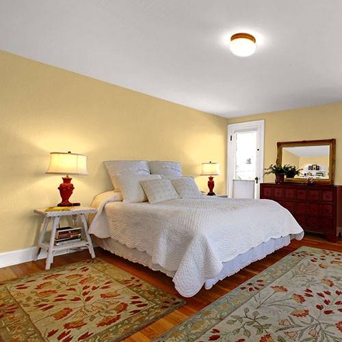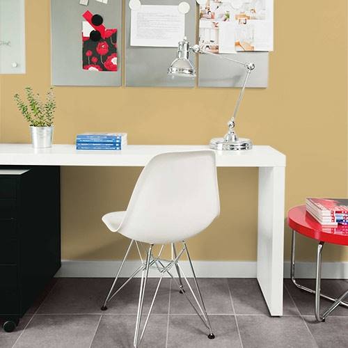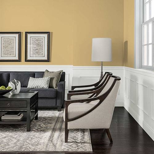 Historical in essence, this gold is an excellent main wall for a dining room. Dark antique woods complement this space successfully.
