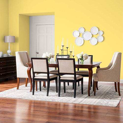 This elegant yellow is beautiful in a kitchen area. Trim in white and use sage green accents to bring a nature inspired essence into the area.