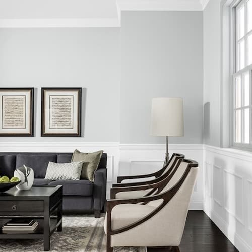 For a fresh and contemporary living room, Thin Ice is ideal. It is especially good for pulling together open floor plans. Complement with trim in off-white and dark woods for the décor, for an eye-catching gathering space.Buy Thin Ice at the Home Depot