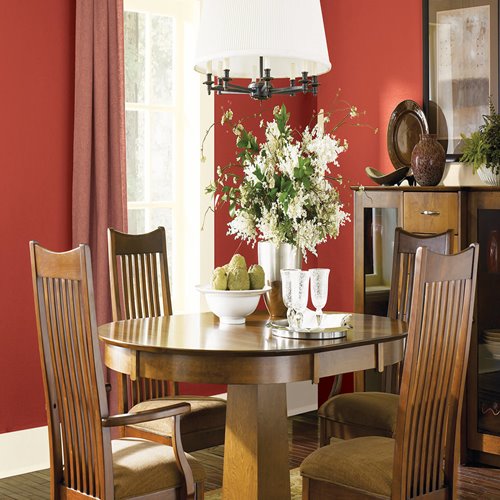 Burning Bush may be perfect for this room in your house. This striking color is especially effective if you have a Moroccan or Oriental decorating scheme. Dark furniture will stand out against this fiery backdrop and the room will be filled with boundless energy. White or off-white trim will make the room pop.