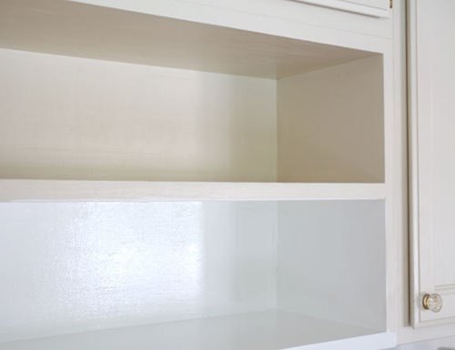 Planning on painting your kitchen cabinets? I’m sure you want to paint the cabinet shelves so everything looks professionally painted when you open the cabinet door. Here are a few tricks that will make the process go quickly and the paint go on smoothly.