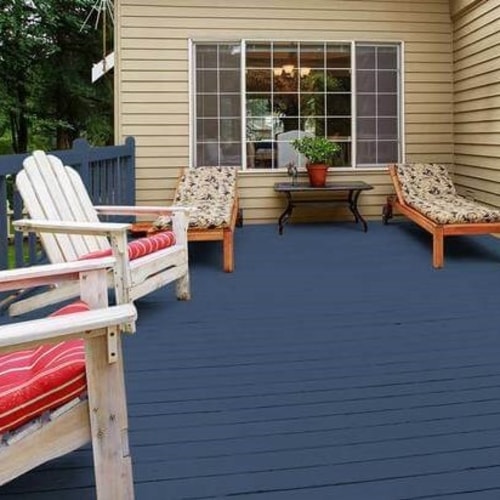 Those who like shades of blue should consider a wood stain color such as Trident Blue. This resurfacer has many advantages. It helps fill in cracks in wood, provides a durable coating, and makes your damaged or worn deck look great! It's fully opaque, with a fine texture to help hide imperfections in the wood.