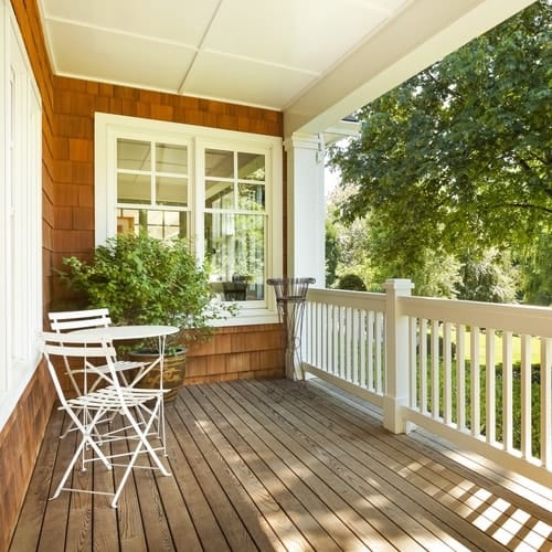 If you like the look of a deep red-orange deck but worry about it matching your house, try Port Wine instead. This pinkish-ochre shade is one of the great deck stain colors for yellow homes because it can do well with both light and dark yellows.