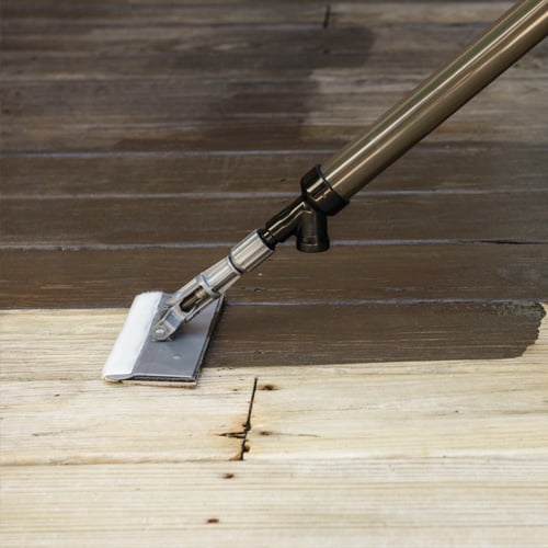 For even coverage, apply the wood stain to one board at a time. For best results, backbrush into the wood surface.