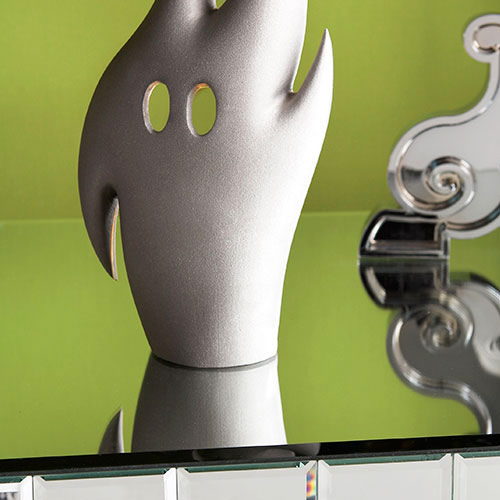 Like an alter ego in a virtual world, the Avatar palette unveils a futuristic, cartoonish and fantastic version of reality. Art, architecture, furniture and fashion all succumb to this influence of playful fantasy. Clean matte shades of green, yellow, and new blue vibrate together, exhibiting a luminosity stabilized only by flat black and white in this palette that represents the other side of reality. Designs are made up of simplistic silhouettes and fun forms where color and/or quirkiness dominate.