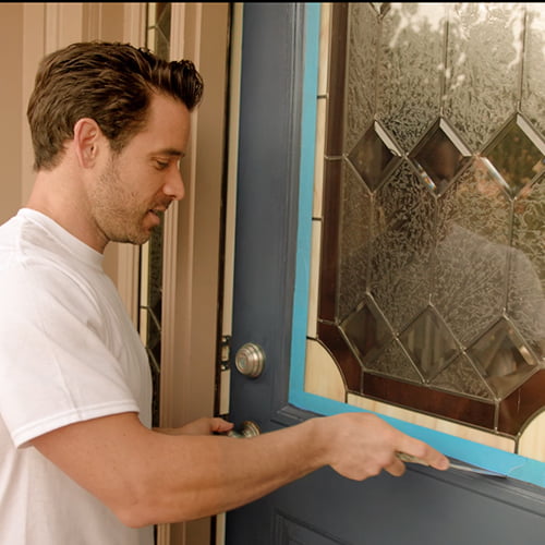 But, if you don’t remove your door before painting it, make sure to tape off and cover any exposed hardware or windows.