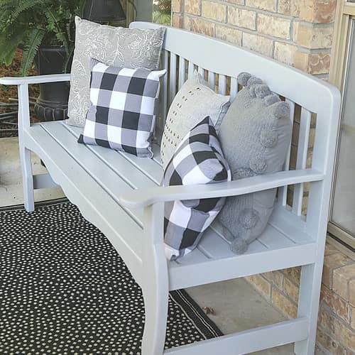 The newly painted bench has a smooth, matte finish to it because it was painted with a satin sheen.