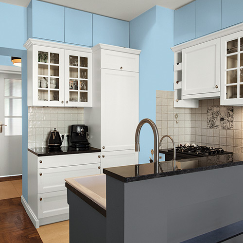 Haunting Hue adds a crisp and clean look to any kitchen, no matter what cabinets and counters you pick. Its soft appearance works great in farmhouse kitchens and in cute cottage kitchens. A pale blue is a good way to incorporate color into your home without looking too intense or wild.